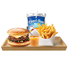 Cheese Burger + Frites + Compote + Capri-Sun.